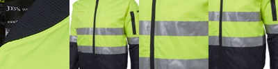 Shell: 100% Polyester 450 D for durability,Lining: Shepherd fleece,Complies with Standards AS/NZS 1906.4:2010 and AS/NZS 4602.1:2011 Day and Night,Two front zip closure pockets and waist pocket flap with Velcro closure,Three internal pockets, one with zip closure, and mobile phone pocket,Fully sealed seams