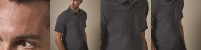 50% cotton/50% polyester. 1x1 ribbed collar.Self fabric taped neck.Two button placket.Twin needle sleeves and hem.Removable adhesive neck label.60°C wash.