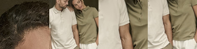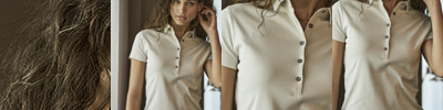95% organic ringspun combed cotton/5% elastane. Mini piqué. Fitted style. Flat knit collar and cuffs with elastane. Taped neck. Three button placket with self colour branded buttons. Side vents. Twin needle hem.