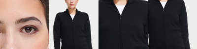 49% cotton/49% acrylic/2% polyamide. This item runs small in comparison to some other brands. Please check sizing before decoration.Set in sleeves.Fitted cut.1x1 ribbed high collar with inner contrast stripe.Covered zip.1x1 elastane rib at cuffs and hem.