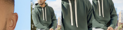 80% organic cotton/20% polyester. Organic or in-conversion to organic cotton. Soft peached fabric with brushed inner. Raglan sleeves. Waffle lined hood with flat natural drawcord. Taped neck. Front pouch pocket with flatlock stitching. Deep ribbed cuffs and hem. Tear out label.