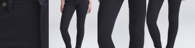 77% cotton/21% polyester/2% elastane. Stretch denim.Skinny fit.Self fabric belt loops.YKK zip fly with button over.Metal rivet detail at pocket corners.Five pocket styling.Twin needle stitching.