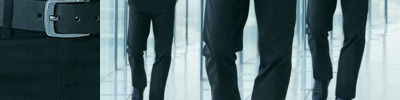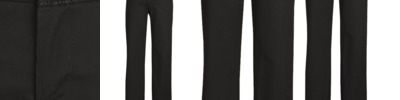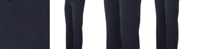 65% Polyester for durability, and 35% Viscose gabardine,Mid-waist fit with front button closure and constructed waist with belt loops,Two front slant pockets and one welt pocket at back hip,Size 18+ have elastic inserts at side seam,Large turn up at hem for length adjustment,Fully tailored styling to allow for further alteration,Easy care fabric