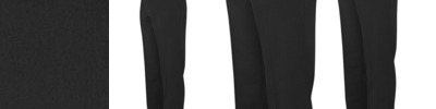 100% Polyester mechanical stretch fabric,constructed adjustable waist with belt loops,Two front slant pockets, front fob packet and two back jet pockets,Utility (key chain) belt loop at right pocket side seam,Large turn up at hem for length adjustment,Fully tailored styling to allow for further alteration,Size 18+ have elastic inserts at side seam