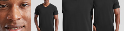 100% combed ringspun cotton. Soft hand feel. Fashion fit. Crew neck with 1x1 rib. Self-fabric back neck tape. New tear away back neck label.