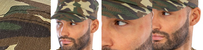 100% cotton twill. 5 panel.No centre seam.Stitched eyelets.Pre-curved peak.Hinged front support panel.Easy tear release size adjuster.
