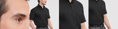 100% cotton micro twill. Slightly tailored fit.Stylish and relaxed long edged collar.Fashionable twin button closure.Self colour buttons.Double folded seams.Double turn up hem on sleeves.Curved hem.