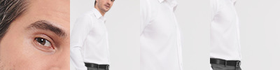 100% cotton micro twill. Stiffened semi-cut away boned collar.Self colour buttons.Back yoke.Double folded seams.Mitred edge two button adjustable cuffs with button on cuff gauntlet.Option for cuff links.Curved hem.