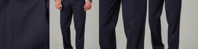 65% polyester/35% viscose. In transition to using recycled polyester.Classic fit.Single pleat.Belt loops.Zip fly with button over.Two side pockets.Rear pocket.Machine washable.
