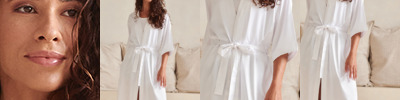 95% polyester/5% elastane. Kimono style robe.3/4 length sleeves.Self fabric tie front.Side pockets.Below knee length.No label.Suitable for sublimation printing.