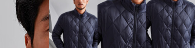Tonal coil zip on centre front with signature zip puller with mousetail piping on CF zip and internal storm flap with chin guard. Diamond stitched sandwiched baffles. 245gsm polyester fill. Stretch elastic around cuffs and hem for added protection. Binding around internal seams. Smartphone friendly - internal self loop attachment for headphone wire. Cire finish semi shine face fabric. Product contains no branded neck label.* Removable Kimble or looped garment tags. Inner seam label holds important product information on one label with a second label containing brand information which can be cut-away.
