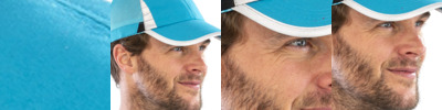 65% polyester/35% cotton. 5 panel.Stitched eyelets.Seamless, stiffened front panel.Curved peak.Tear release size adjuster.Tear out label.Branded inner upstand.