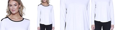 4.8 oz., 100% micro-textured polyester knit; Anti-bacterial; Moisture-wicking; Feminine fit; Flat-knit collar; 3-button placket; Hemmed sleeves; Matching shoulder panels; Side vents; Tagless;
