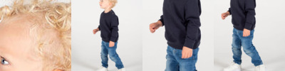 Crew neck sweatshirt. Knitted rib at neck, cuff and hem. Popper opening on shoulder. Twin needle stitching.