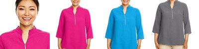 4.5 oz/yd2 / 160 gsm, 100% polyester mélange jersey; Moisture-wicking and antimicrobial performance; UV 15-39 protection; Center front translucent zipper; Contrast coverstitching; Reflective piping details;