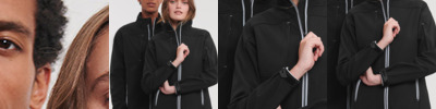 Three layer soft shell. 94% polyester/6% elastane outer.Waterproof 5000mm, breathable 5000g/m² and windproof hydrophobic membrane.Part honeycomb jersey lining, part fleece lining.Bionic-Finish® Eco treatment.Fluorine and PFC free.Classic fit.Stand up collar.Full length contrast zip with chin guard and inner zip guard.Hydroshell underarm ventilation panels.Right chest covered zip pocket.Inner mesh media pocket.Left sleeve zip pocket.Two contrast front zip pockets.Tear release adjustable cuffs.Access for decoration.