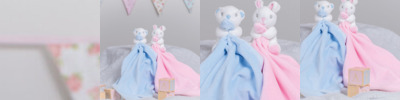 Soft plush rabbit comforter with double-layered blanket and internal rattle. Available in baby pink and baby blue colour options. Zip access allows the blanket to be directly embroidered, vinyl or sublimation printed. Complies with EN71 European Toy Safety regulations. Remove all hang tags and their fasteners before giving these items to a child. Suitable for all ages.