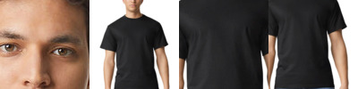 Classic fit. Seamless non-topstitched 2.22cm collar. Taped neck and shoulders. 2.22 cm double needle sleeve and bottom hems. Quarter-turned to eliminate centre crease. Tear-away label.