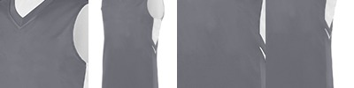 Two layers of 100% polyester wicking knit ; Wicks moisture away from the body ; Fully reversible ; Self-fabric mitered V-neck collar ; Contrast color side inserts ; Each layer hemmed separately for embellishment ; Outside locker label ; Contrast jersey hood lining, neck tape and drawcord for contemporary styling details (all body colors include charcoal grey contrast detailing except charcoal heather, which has black); Two-needle coverstitching on armholes, shoulders and waistband;