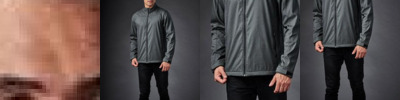 - Adjustable cuffs and hem