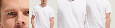 100% ringspun semi-combed cotton.* Ribbed V neckline.Taped neck.Tubular knit.Twin needle sleeves and hem.