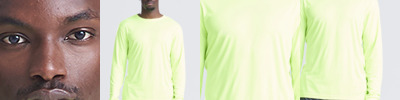 100% combed ringspun cotton.* Modern fit. Ribbed collar. Taped neck. Side seams. Twin needle sleeves and hem. Name label. Unbranded size label.