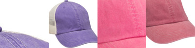 100% cotton front panel and visor; 100% nylon mesh back panel; 6-panel, unstructured, low-profile, pre-curved visor; Pigment-dyed front panels with contrast stitiching (matches back panels); Traditional tan nylon mesh back panels; Self fabric strap with adjustable antique brass slider back closure; Four-row stitching on visor;