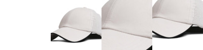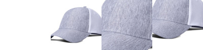 97% polyester, 3% spandex heather jersey kniit front and visor; 100% polyester soft mesh back; NO Sweat™ moisture wicking sweatband; Structured, mid-profile;