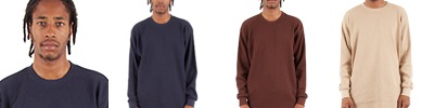 8.9 oz., 100% USA cotton, 18 singles; Heavyweight waffle knit; Heather Grey is 90% USA cotton/10% polyester; Charcoal Grey is 50% USA cotton/50% polyester; Shoulder-to-shoulder neck tape; 1" double-needle stitched bottom hem; 1" neck ribbing; Ribbed wrist cuffs; Forward-thrusted shoulder seam for comfortable neck fit; Woven neck and side-seam labels;