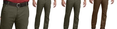 10 oz., duck, 68% cotton, 30% polyester, 2% elastane (Lycra); Tough Max™ technology for exceptional performance; Flex fabric for ease of movement and comfort; Sits slightly below waist, traditional fit through seat & thigh; Utility loop and dual tool pockets; Triple-needle reinforced felled outseam; Modern work fit;