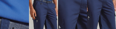 65% recycled polyester/35% cotton. Easy care fabric.Belt loops.Zip fly with button over.Two side cargo pockets.Rear patch pocket.Domestic wash 60°C.