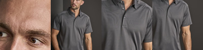 100% polyester CoolDry. Moisture wicking fabric allowing you to stay cool, dry and comfortable. Self fabric fused collar. Shaped fit. Three contrast anthracite button placket. Twin needle stitching.