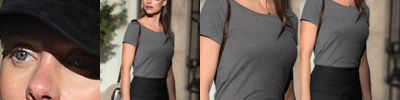 3.5 oz., 100% combed and ring-spun liquid cotton; 40 singles; Optimal stretch and recovery; Fashion fit; Side seams; U-neck; Scalloped hem; Loose fit; Tear-away label; Made in a W.R.A.P. certified factory;