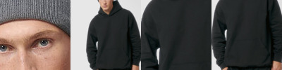 Unisex boxy dry hand-feel hoodie sweatshirt. Set-in sleeve. Double-layered hood in self-fabric. Inside single Jersey back neck tape. Self-fabric half-moon at back neck. Single needle topstitch at neckline and along hood opening. 2x1 rib at sleeve hem and bottom hem. Armhole, sleeve hem and bottom hem with twin-needle topstitch. Kangaroo pocket at front.