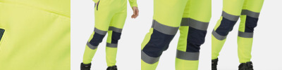 65% polyester 35% Cotton brushed back fabric. Conforms to EN ISO 20471:2013 +A1:2016 Class 2 (orange also RIS-3279/TOM). Cordura® fabric at the knee for durability. Elasticated waist and side pocket openings.
