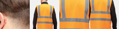 100% polyester tricot mesh fabric. Conforms to EN ISO 20471:2013 +A1:2016 Class 2 (orange also RIS-3279/TOM). Hook and loop fastening.