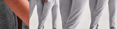 80% organic cotton/20% recycled polyester.* Soft cotton faced fabric. Brushed back fleece. Ribbed waistband with drawcord. Nickel free eyelets and drawcord tips. Two side zip pockets. 2x1 ribbed cuffed leg ends. Twin needle stitching. Unbranded size label at neckline.
