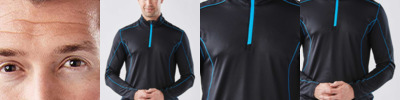 92% polyester/8% spandex single jersey. H2X-DRY® moisture management fabric. Unlined. Contrast 1/4 zip with chin guard. Open cuffs and hem. Contrast cover stitching. Branding on right hem.