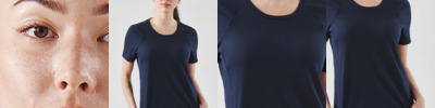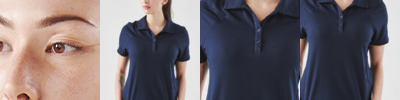 100% recycled polyester. Textured recycled fabric with inherent wickability. UPF 30+ UV protection. Relaxed fit. Self fabric collar. Taped neck. Twin needle stitching. Tear out label.