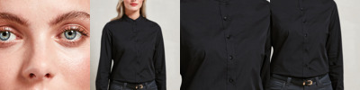 65% polyester/35% cotton poplin. Easy care fabric. Modern fit. Classic banded 'Grandad' collar. Pearlised buttons. Bust and back darts. Two button adjustable cuffs. Curved hem.