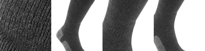 38% Merino wool/38% polypropylene/22% polyamide/2% elastane. Double cuff. Elasticated over foot and ankle support. Cushioned sole, toe and heel. Branded.