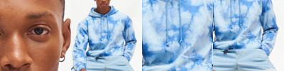 80% ringspun cotton/20% polyester. Brushed back fleece. Drop shoulder style. Double fabric hood with round drawcord. Front pouch pocket. Ribbed cuffs and hem. Twin needle stitching. Unbranded size label at neckline. Due to the dyeing process each garment is unique.