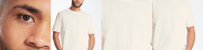 100% organic cotton. Organic or in-conversion to organic cotton. Relaxed fit. Fine ribbed collar. Taped neck. Side seams. Twin needle stitching. Tear out label.