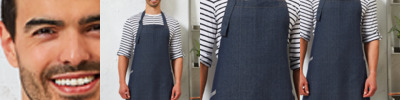 65% recycled polyester/35% cotton. Easy care fabric. Self fabric neckband with antique brass buckle. Brass eyelets. Front zip pocket. Two side pockets with rivet detail. Contrast stitching. Self fabric 90cm ties. Width 72cm. Length 89cm. Domestic wash 60°C.