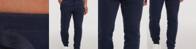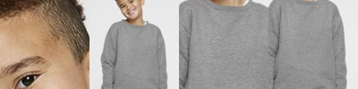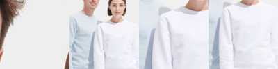 79% cotton/20% polyester/1% viscose. Cotton faced fabric. Brushed back fleece. Drop shoulder style. 2x2 ribbed collar, cuffs and hem. V detail at front neck. Taped neck. Half moon back yoke. Unbranded size label at neckline.