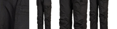 Polyester/cotton holster trousers with four-way stretch panels and kneepad pockets. Recycled polyester fabrics. Cargo pocket with zip pocket. 40+ UPF rated fabric.