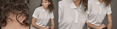 95% recycled polyester/5% elastane. Quick drying with moisture wicking properties. Easy care fabric. Tailored fit. Flat knit collar and cuffs. Three self colour button placket. Twin needle hem.