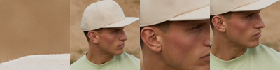100% organic cotton. 5 panel. Soft unstructured crown. Flat peak. Self fabric strap with tri-glide buckle. Tear out label.