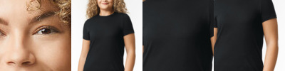 Made with our soft ringspun cotton blend, the Softstyle™ CVC adult t-shirt features high stitch density for a smoother printing surface. Soft ringspun fabric feels great against your skin. Non-topstitched, narrow width, rib collar. Taped neck and shoulders for comfort and durability. Modern classic fit, tubular body. High-performing black tear-away label.