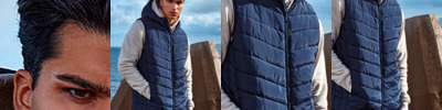 Reverse coil zip on centre front with recycled icon zip pull and internal storm flap and chin guard. Diagonal ‘v’-stitched sandwiched baffles on front and back body panels with horizontal stitched baffles at side seams. Lightweight polyester fill. Internal binding on all seams. Reverse coil zip pockets. Stretch binding around armholes and hem for added protection. Attached square baffled hood. Inner phone pocket. Embroidery access. Product contains no branded neck label.* Removable Kimble or looped garment tags. Inner seam label holds important product information on one label with a second label containing brand information which can be cut-away.
